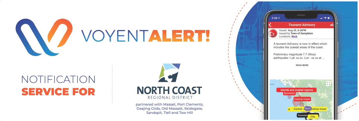 ePACT discontinued: The North Coast Regional District (NCRD), along with its community partners on Haida Gwaii, will be discontinuing its ePACT emergency notification system as of August 1, 2024, at which time Voyent Alert! will be used. Anyone registered with ePACT have been migrated to the Voyent Alert! system. However, we do suggest that you login to ensure your contact information and address are up to date.